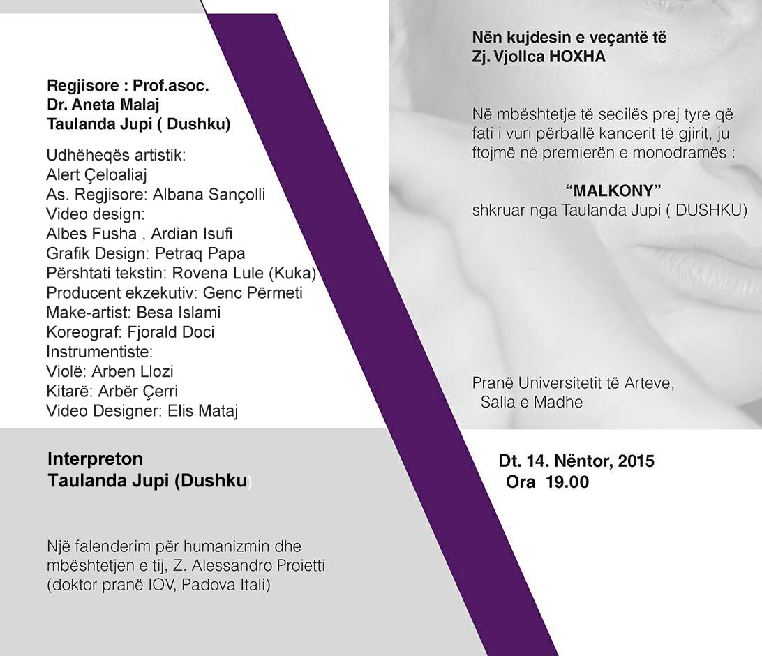 Ftesë për pjesëmarrje në premierën e monodramës "Malkony"